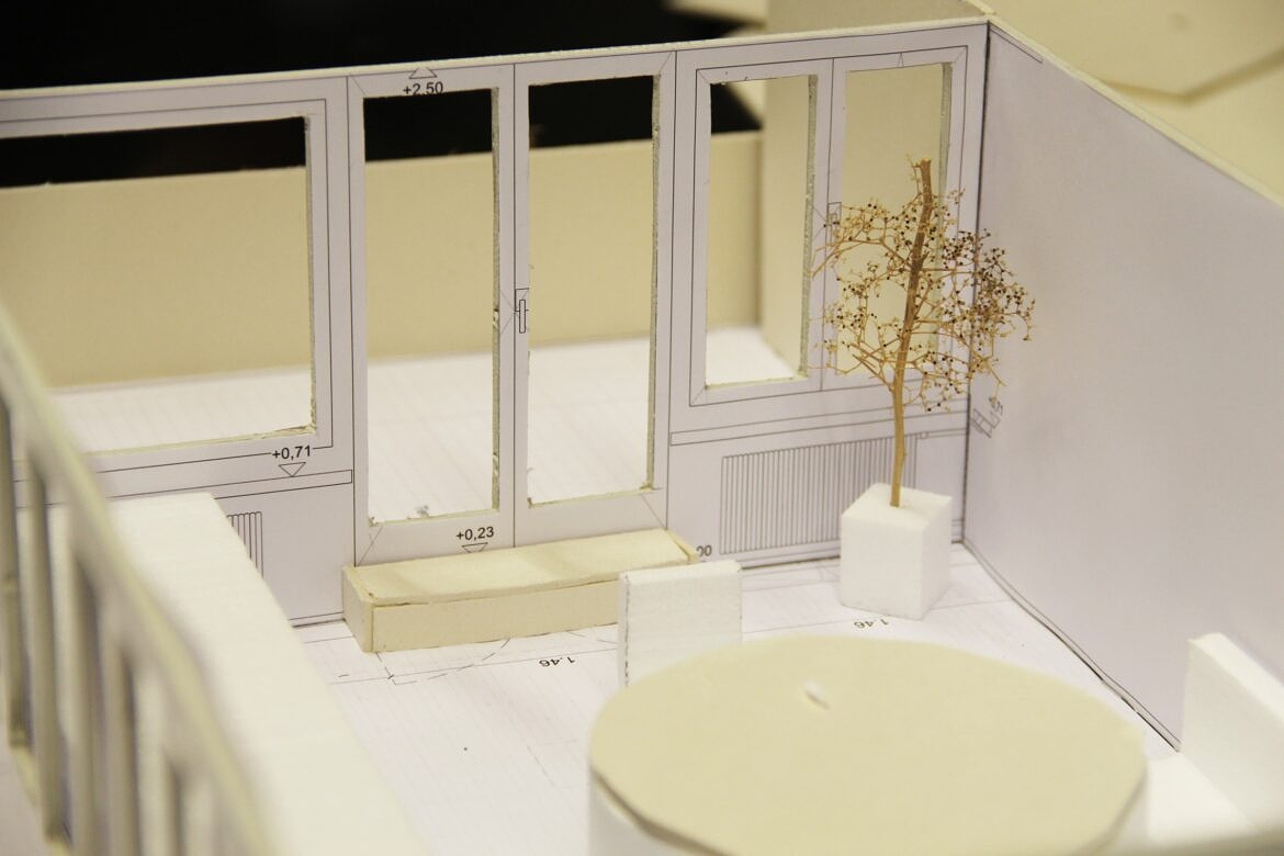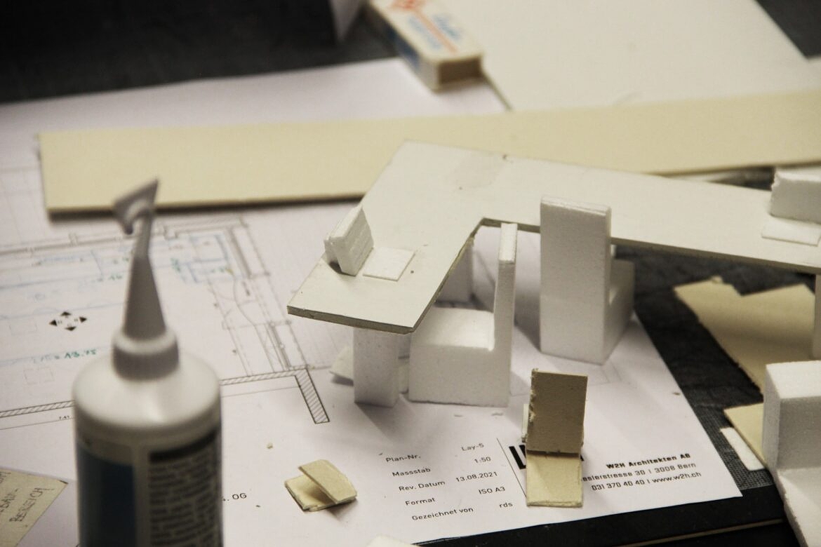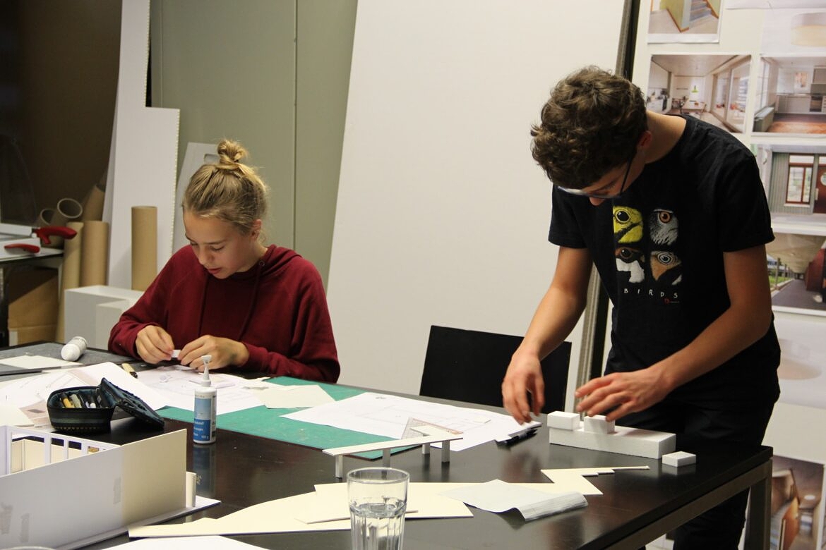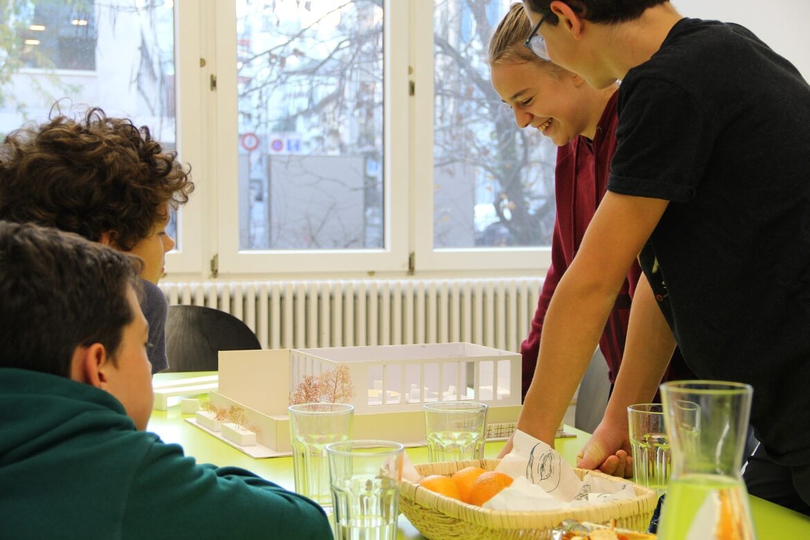 Vor dem Mittag erhielten die Vier einen Einblick ins CAD und in die 3D-Planung von Gebäuden. Nach Pizza im Büro konnten sie dann selber kreativ werden und ihre Vorstellungen und Überlegungen zur Gestaltung eines Pausenraums im Modell bauen und darstellen.