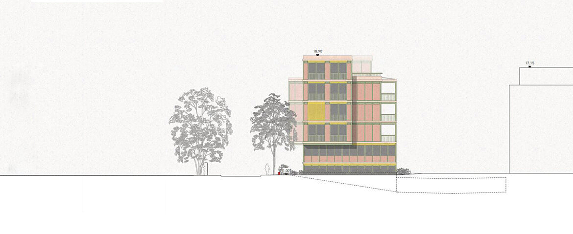 Im lebendigen Berner Länggassquartier soll ein, in den 1970er erbautes, Mehrfamilienhaus abgerissen und neugebaut werden. Wir schlagen ein nachhaltiges Konzept vor, dass Teils die bestehende Struktur erhält und mit vier neuen Geschossen in Holzbauweise ergänzt wird. Das neue Haus bietet ein vielfältiges Angebot an Gewerbe, Gemeinschaft und unterschiedlichen Wohnformen.