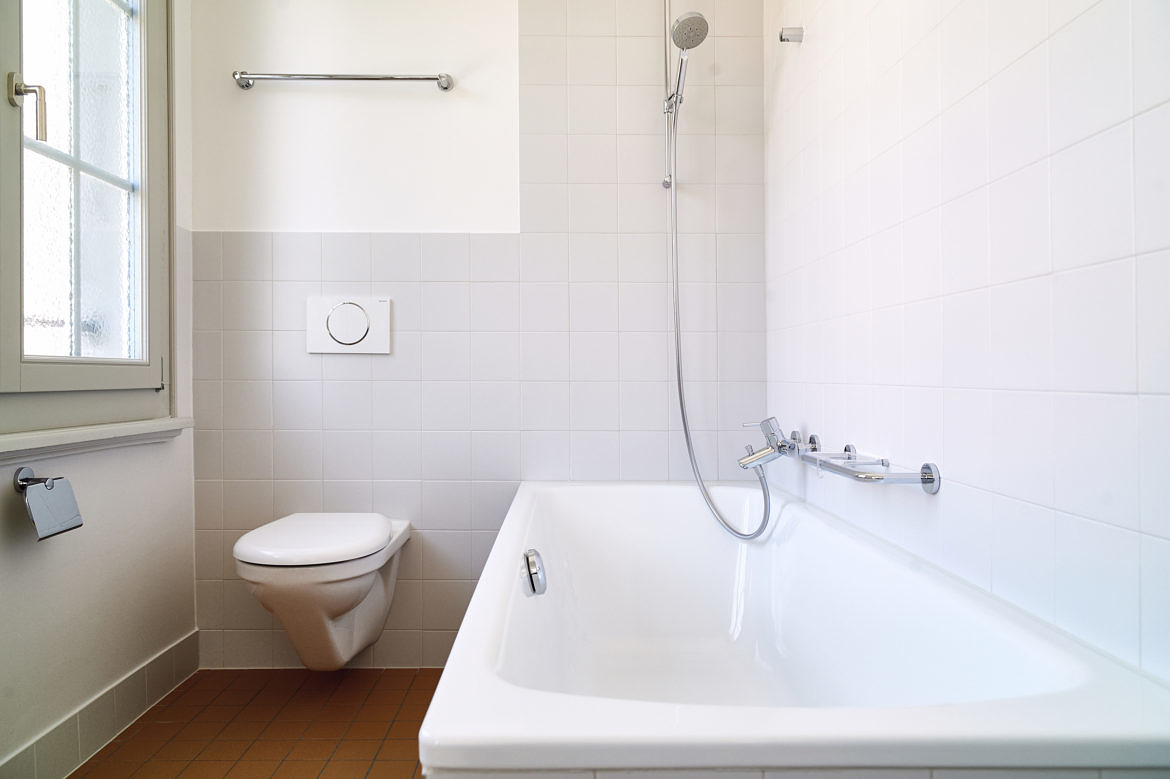 In den insgesamt neun Wohnungen wurden Bäder und Küchen ersetzt und neu gestaltet. Auf bauliche und konstruktive Details im Bestand wurde wert gelegt. So haben wir beispielsweise in den Zimmern die Zierstäbe der Türverkleidungen ergänzt oder ausgebessert. Das Farbkonzept ist nach Rücksprache mit der Denkmalpflege erarbeitet: Decken und ausgerundete Übergänge werden weiss gestrichen, die Tapetenflächen zwischen Fussläden und teilweise ergänzten Wandstäben in einem leichten Grau gehalten.