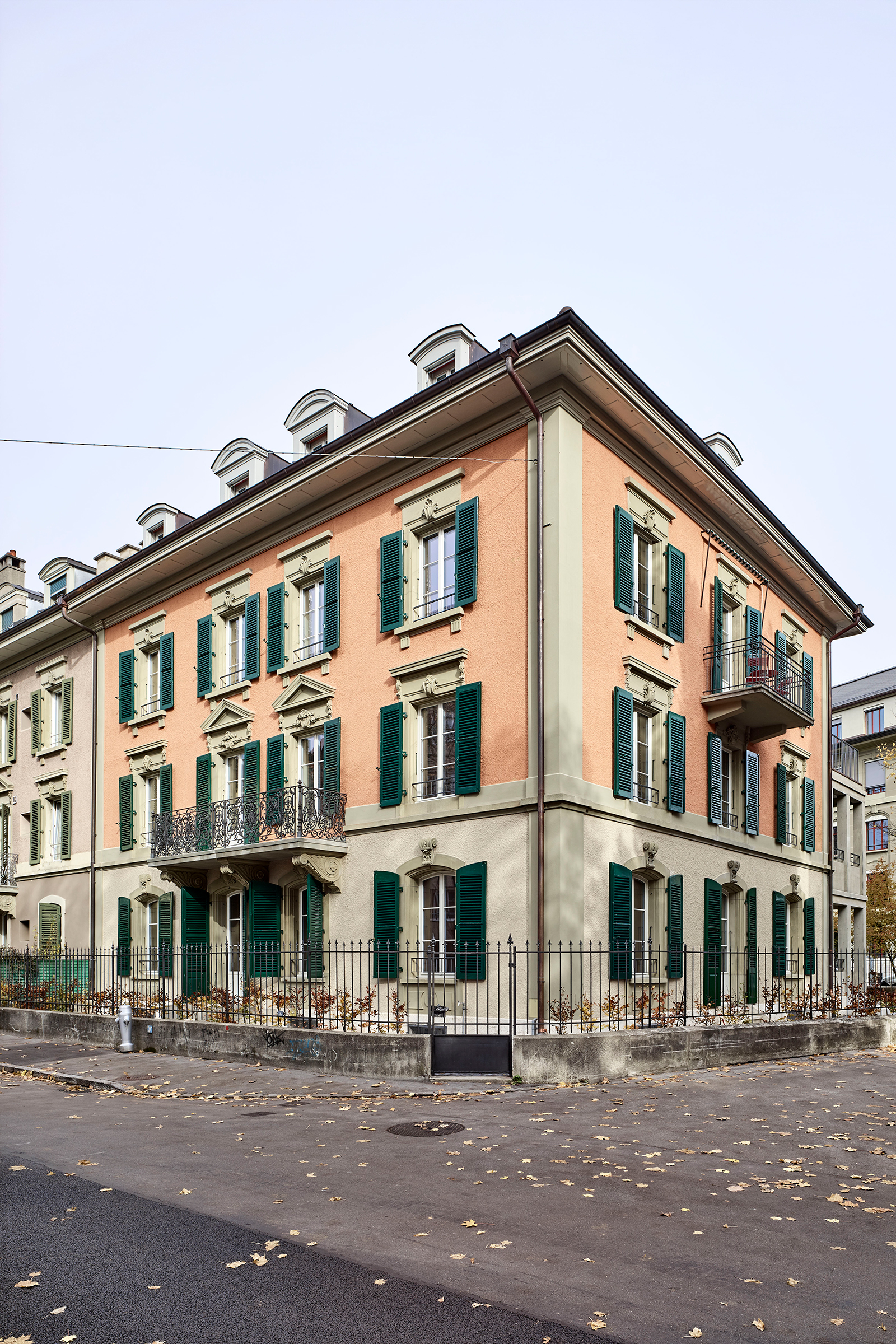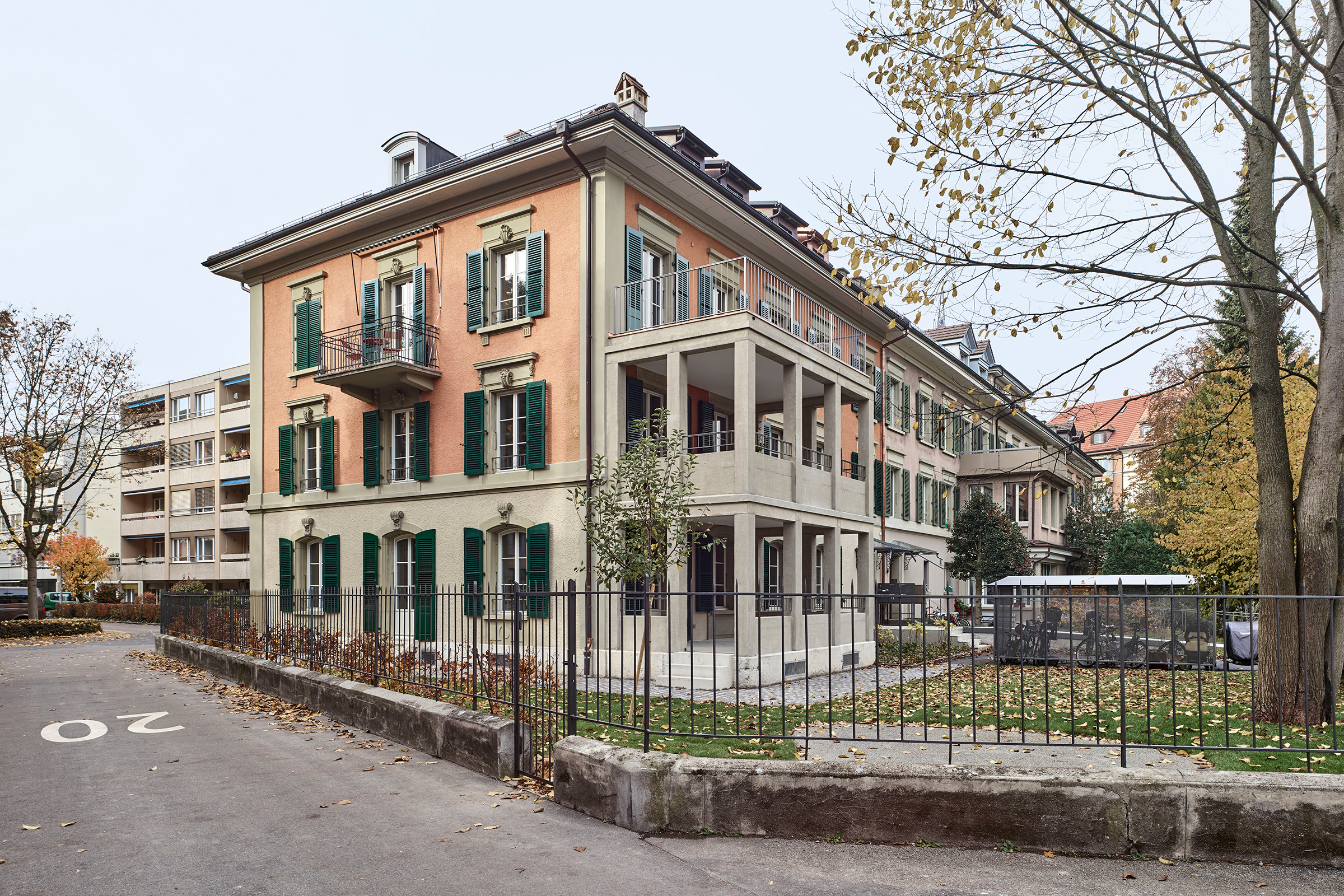 Die vier Reihenmehrfamilienhäuser «Mon Repos» wurden 1875–1877 durch den Berner Baumeister Friedrich Kern erstellt und gehören zu den bedeutendsten Beispielen dieses Bautyps im Länggassquartier. Das Wohnhaus an der Zähringerstrasse 22 wurde in den 1960-er Jahren in ein Altersheim umgebaut, die Verandaterrasse musste einem eingeschossigen Anbau für die Produktionsküche und dem Essraum weichen. 2012 sanierten wir Fassade und Dach, wichtige bauhistorische Erkenntnisse zu Materialität und Farbigkeit wurden ermittelt und wieder hergestellt. Aufgrund sich veränderter Anforderungen wechselte kurz darauf der Betreiber Domicil Bern den Standort und wir erhielten den Auftrag für die Rückführung zu einem Wohnhaus.