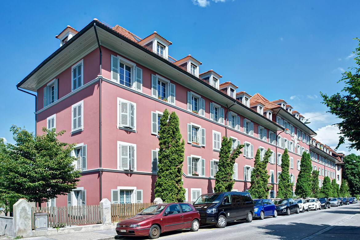 Ein ehemals gemeinnütziger Wohnungsbau mit Kleinwohnungen wird gesamtsaniert und ein Teil der Kleinwohnungen zu Familienwohnungen zusammengefügt. Neue Balkone, Liftkerne und Dacheinschnitte werden in enger Zusammenarbeit mit der Denkmalpflege ermöglicht.